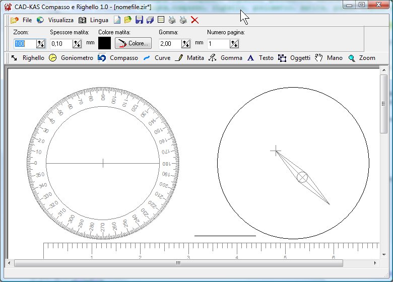 Disegna con compasso, righello, goniometro, matita e gomma sullo schermo come se fossi su un foglio di carta.