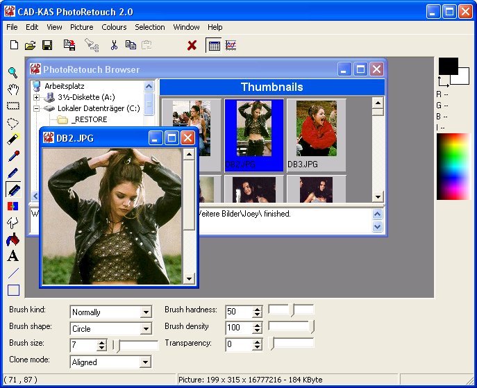 air brush etc. You can open pictures in many file formats (JPG, GIF, BMP, TGA, TIF, PCX).
