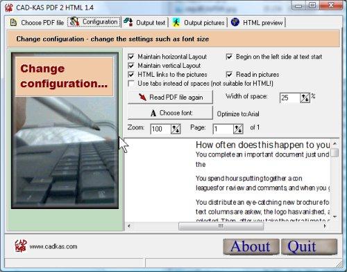 PDF 2 HTML can open PDF files. It recognizes the texts, the layout