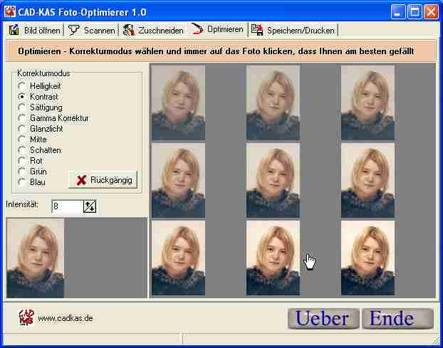 Sie klicken einfach so lange auf eines der Beispiel Bilder, die Ihnen das Programm anbietet, bis Sie mit dem Ergebnis zufrieden sind. Sie arbeiten sich also schrittweise zum optimalen Ergebnis vor.