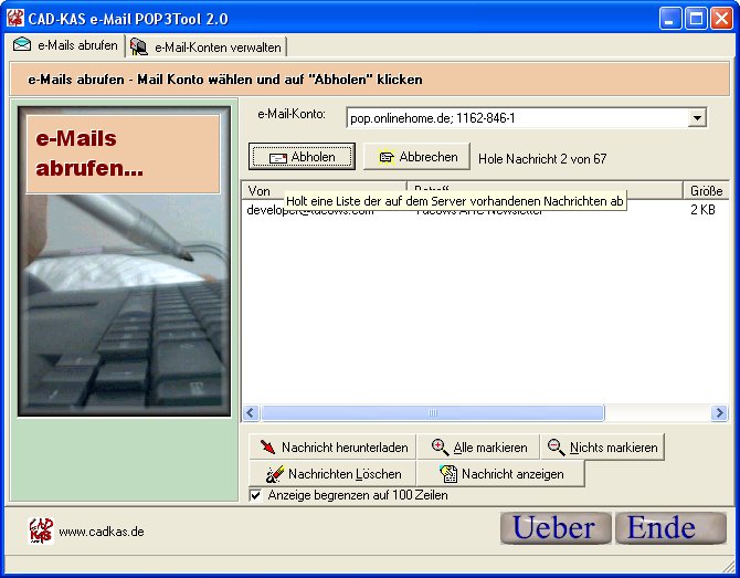 e-Mail POP3Tool 2.1 - Direkt auf dem Server Emails verwalten und löschen
