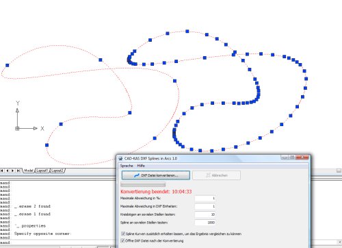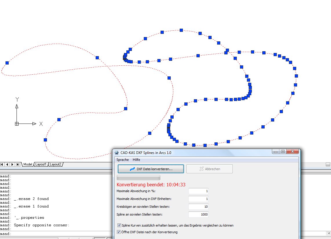 Sie können die Spline Kurven und die Kreisbögen in die Ziel-DXF Datei schreiben lassen, um das Ergebnis der Umwandlung beurteilen zu können.