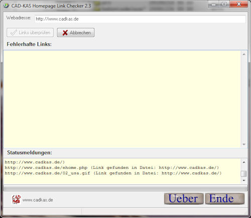 Das Programm durchsucht zunächst die erste Seite nach allen Links und prüft ob diese noch gültig sind. Links auf Unterseiten werden daraufhin verfolgt und auf den Unterseiten werden ebenfalls alle Links und alle Bilder auf Gültigkeit überprüft.
