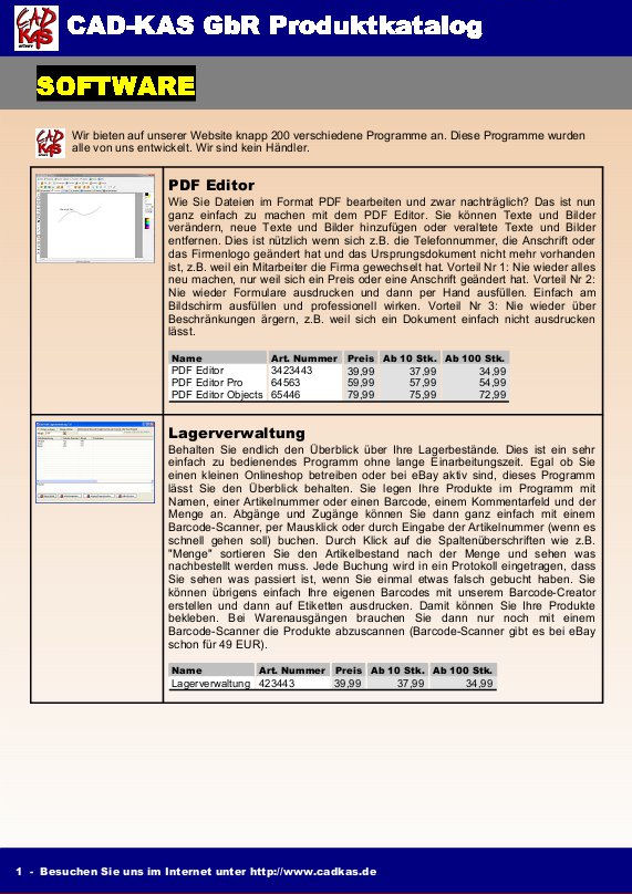 Auch der Seitenumbruch usw. erfolgt automatisch. Sie kümmern Sie sich nur um die Produktinformationen.